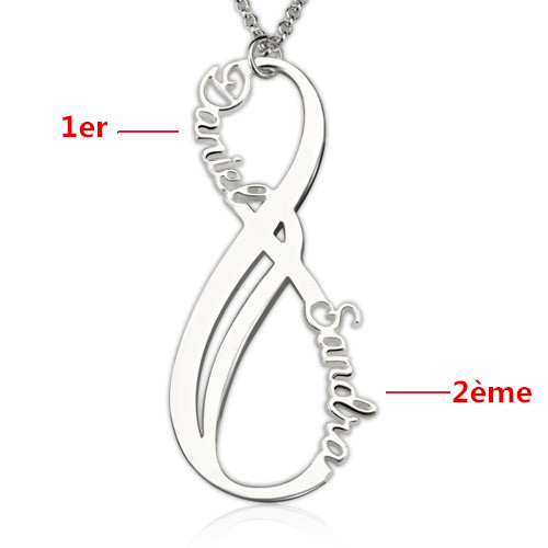 Le symbole d'infini peut signifier l'amour infini et l'amitié éternelle et maintenant vous pouvez personnaliser l'infini avec le Collier de Nom d'Infini Vertical. Personnalisez ce collier avec deux noms pour montrer votre amour ou amitié à un de vos proches.