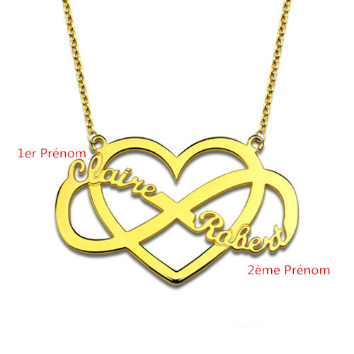 Notre collier prénom avec symbole de cœur et d'infini, dont le design est vraiment exquis, cadeau magnifique pour vous-même ou pour votre bien-aimée, peut personnaliser deux inscriptions.