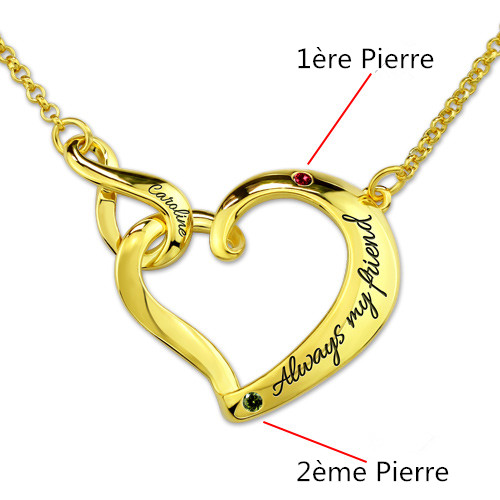 Ce Collier de Coeur d'Amour d'Infini élégant est un objet mémorable pour les soeurs ou les amies du monde entier! C’est un merveilleux don pour célébrer le fait que nous sommes soeurs. Le symbole d’infini est entrelacé avec le coeur sur lequel vous gravez les mots que vous voulez porter. En plus, les deux pierres porte-bonheur rend ce collier plus billant. Ce magnifique bijou sera le cadeau parfait pour les soeur.