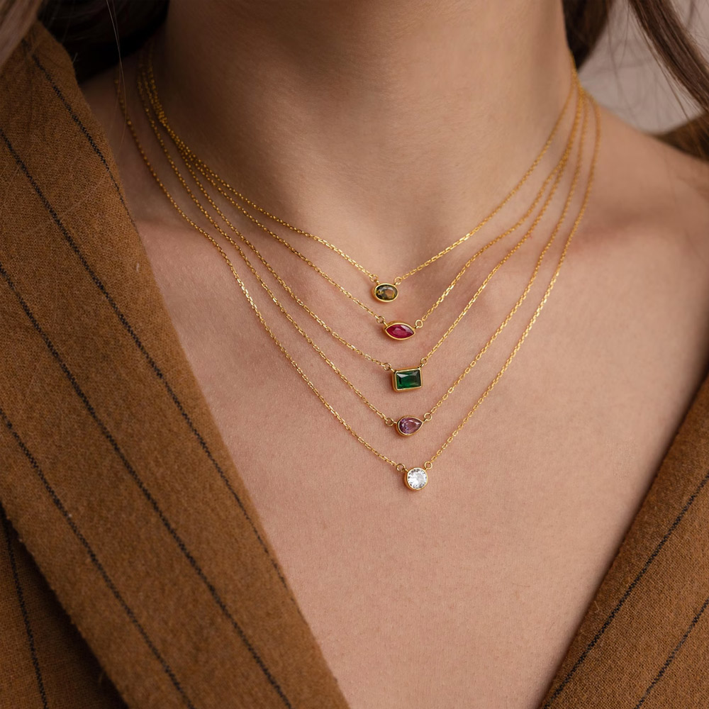 Style | Collier personnalisé avec pierre de naissance ovale/marquise/émeraude/poire/ronde |