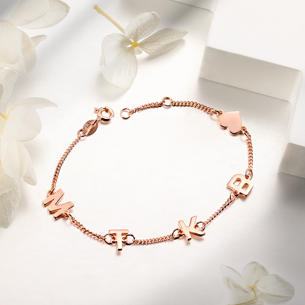 Bracelet prénom / nom en argent sterling personnalisé en or rose