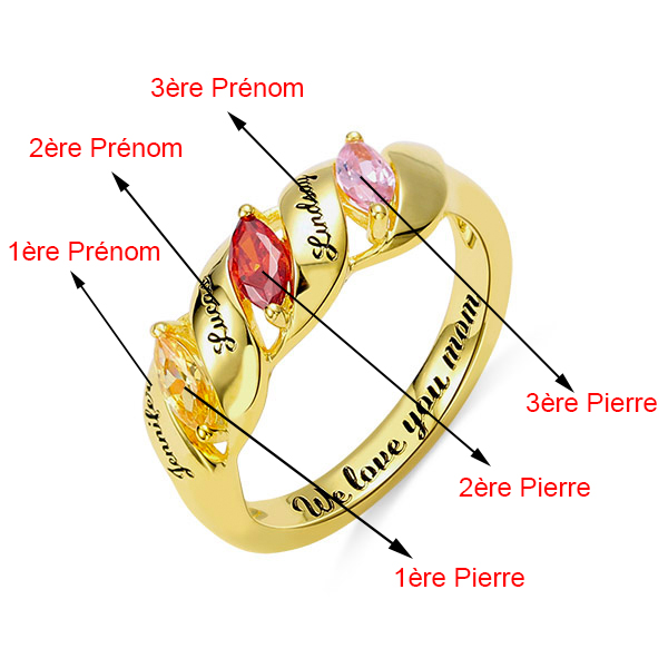 Bague Tordu-3 Prénoms et Pierres de Naissance-Plaqué Or
